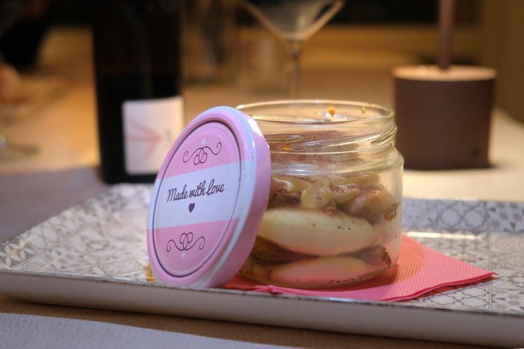 Terminiamo la cena con un’ottima Cheesecake alle fragole e un Tiramisù servito in un vasetto in vetro.