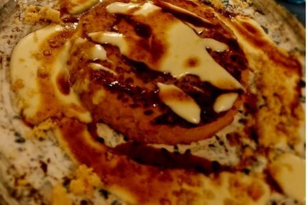 I main courses del menu sono certamente i primi, che strizzano l’occhio alle origini brianzole della famiglia Fugagnoli (“bagaj” in brianzolo significa “ragazzi”). Protagonista è l’ossobuco in entrambe le preparazioni che abbiamo avuto il piacere di provare. Il Riso alla milanese al salto accompagnato da fonduta di Tremosine, riduzione di ossobuco e crumble salato e le Tagliatelle al ragù di ossobuco con gremolada di prezzemolo e limone. Ad accompagnare magistralmente entrambi i piatti una piacevolissima Bonarda dell’Oltrepò Pavese.