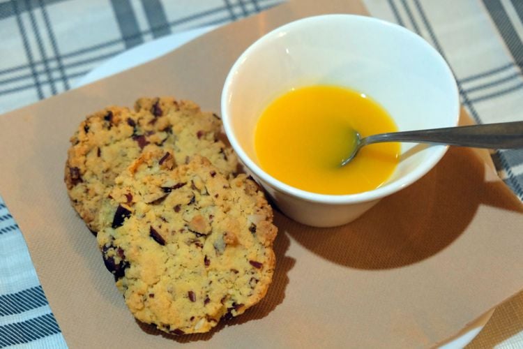 Come ultimo antipasto gustiamo i Gamberi avvolti nella pasta Kataifi, serviti con una salsa agrodolce, un piatto in perfetto equilibrio tra la croccantezza della pasta e la morbidezza dei gamberi.