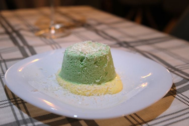 Come secondo piatto, gustiamo il Filetto di branzino in carta fata, accompagnato da gambero reale e frutti di mare. Il cartoccio viene aperto direttamente al tavolo sprigionando un profumo avvolgente: un piatto ben riuscito che, grazie a questa tecnica di cottura, esalta i sapori freschi del pesce.