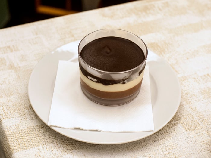 Non può mancare il Tiramisù della casa, iconico e avvolgente e il Semifreddo ai tre cioccolati, che gioca tutto sull’equilibrio tra intensità, dolcezza e consistenza. Tre anime per una conclusione dolce che apre ricordi e accende emozioni.