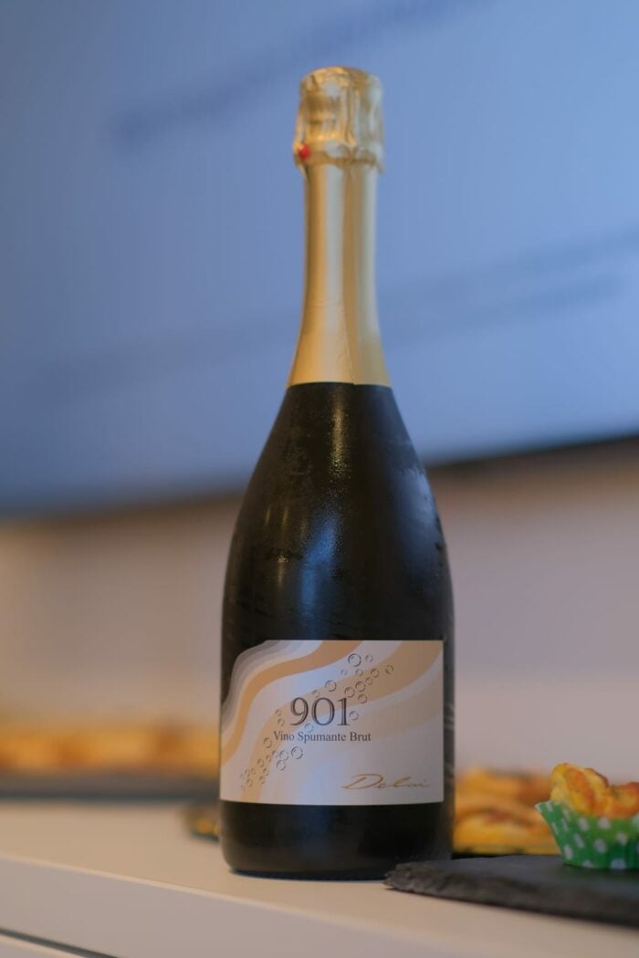 Abbiamo iniziato il nostro apericena assaggiando il Delai 901 Spumante Brut prodotto dai vitigni Groppello Gentile (prevalenza), Barbera e Sangiovese abbinato a pizzette e prodotti da forno del Panificio Puerari. Un rosso vinificato in bianco spumantizzato dal perlage fine, omogeneo e persistente e dal colore paglierino con una delicata sfumatura ramata, la lavorazione charmat esalta alla perfezione i sentori di lieviti e crosta di pane di questo spumante.