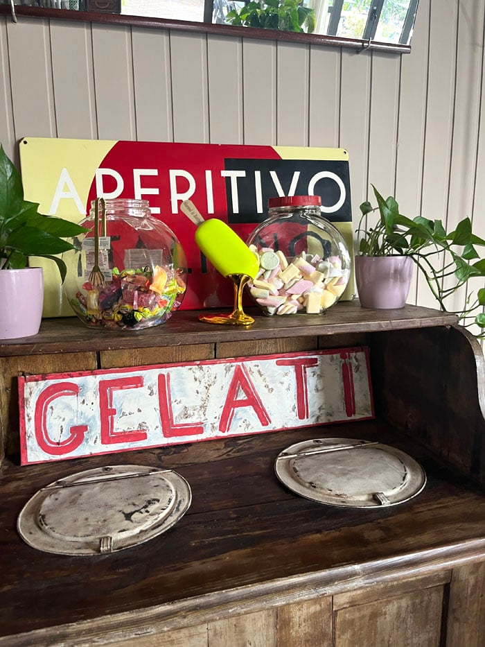L’interno del ristorante è un vero e proprio museo di pezzi unici vintage e da collezione, che raccontano la passione di Andrea per l’antiquariato; ogni angolo del locale è arricchito da oggetti rari, che spaziano tra mobili d’epoca, oggettistica vintage e complementi di arredamento dal fascino intramontabile, questi tesori sono anche acquistabili.