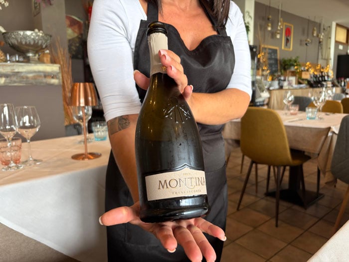 Si comincia con un Brut Montina: calice di un giallo dorato, bollicine fini e profumi di frutta fresca e fiori; vibrante e sapido, perfetto per accompagnare l’entrée.