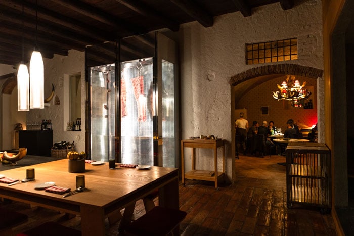 In poco più di un anno, il Quintale di Erbusco si è già ritagliato un posto d’onore tra le tavole più interessanti della Franciacorta. Alla guida c’è Davide Modesti, giovane chef bresciano cresciuto all’Albereta e tornato a casa dopo esperienze importanti, che ha dato un nuovo volto a questo locale nato qualche anno fa attorno alla carne, con l’idea di valorizzare tutto l’animale, dal naso alla coda.