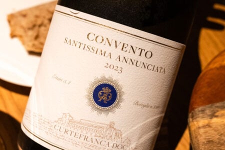 La carta dei vini è un viaggio tra etichette italiane e francesi, con un’attenzione particolare alle bollicine locali. Noi abbiamo scelto di restare “in famiglia”, con un excursus Moretti: un Bellavista Franciacorta Brut Grande Cuvée Alma per aprire, poi uno Chardonnay Curtefranca Bianco Convento Ss. Annunciata, sul Monte Orfano — con l’eleganza delle vecchie vigne — e infine un Hebo, avvolgente taglio bordolese toscano.