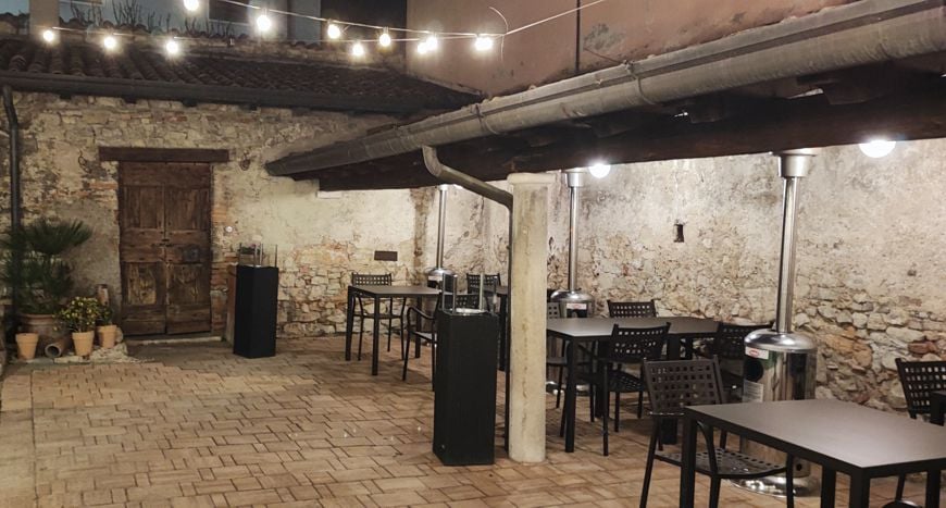 La trattoria mette a disposizione un accogliente spazio esterno in un caratteristico cortile.