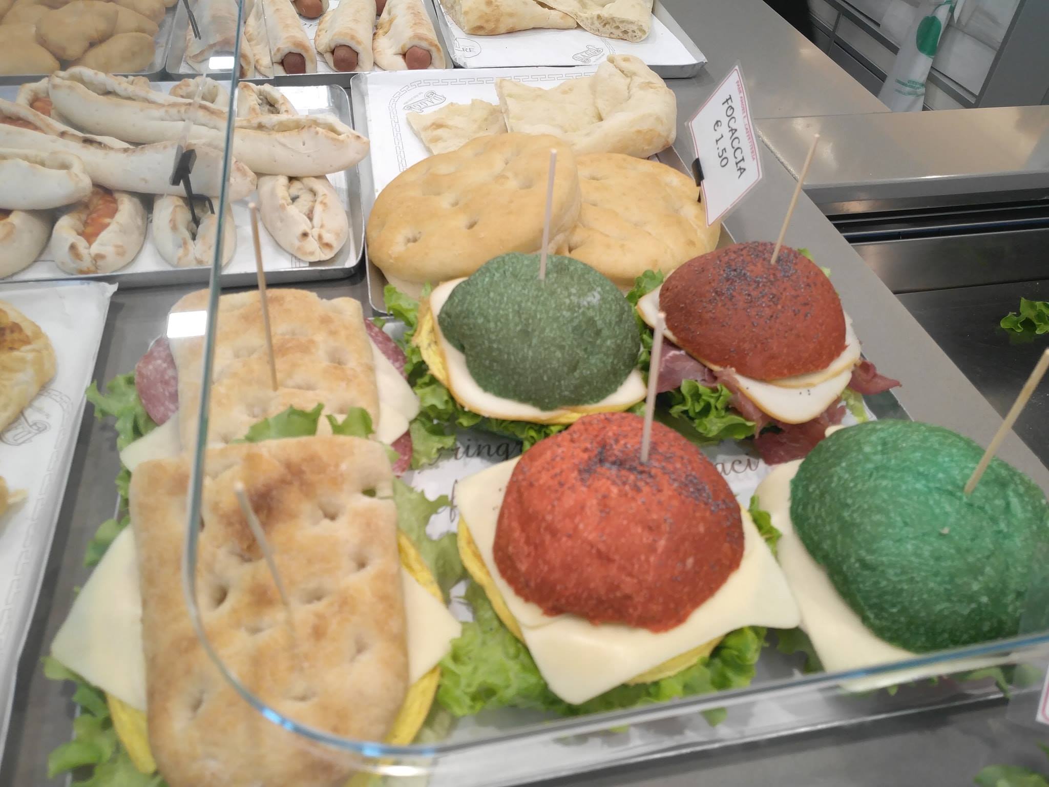 Pane fresco, pizze, focacce e generi di prima necessità (Latte, pasta, farina, pomodoro, bevande, prodotti di gastronomia, salumi).